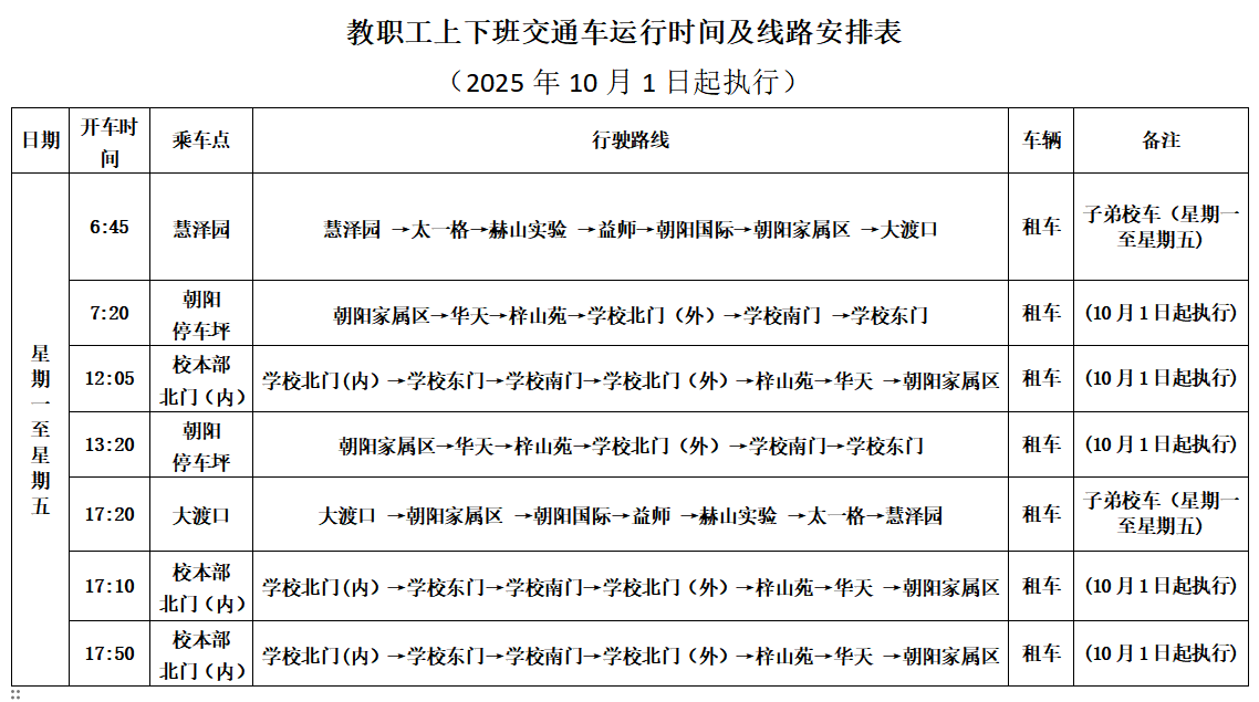 2.教职工上下班乘车时间表(冬令时)